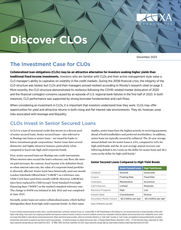Collateralized loan obligations (CLOs) may be an attractive alternative for investors seeking higher yields than traditional fixed income investments.